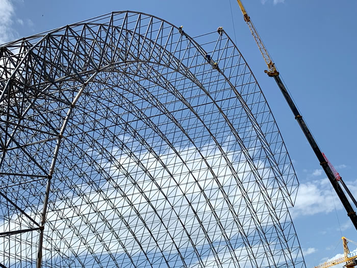 (2)网架加工前应对现场尺寸进行复测,确认无误后方可进行加工、安装;网架制作、运输、安装应遵守《空间网格结构技术规程》JGJ7-2010、《钢网架崇左螺栓球节点》JG/T 10-2009、《钢网架崇左螺栓球节点用高强度螺栓》 GB/T 16939-2016、《崇左钢结构崇左工程崇左施工规范》 GB50755-2012、《崇左钢结构崇左工程崇左施工质量验收标准》 GB50205-2020。